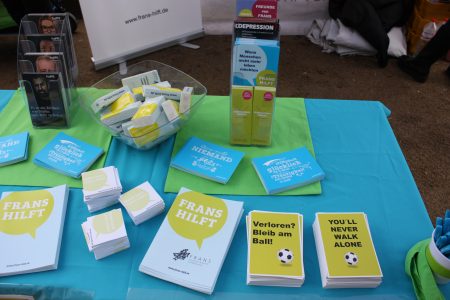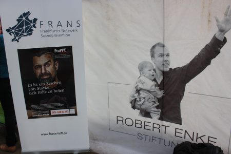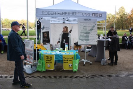 Dank der Kooperation mit der Robert-Enke-Stiftung, die vielen Fußballfans ein Begriff ist, konnten wir Aufmerksamkeit erregen und die Stadiongäste kamen an dem gemeinsamen Infostand vorbei, um sich zu informieren und Materialien mitzunehmen.