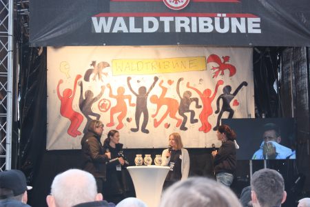 Die Eintracht hat uns in unserer Initiative super unterstützt und alle Möglichkeiten geboten, unser Netzwerk zu präsentieren: so stellte Inga Beig die Arbeit von FRANS auf der Waldtribüne vor außerdem wurde vor dem Spiel auf dem Videowürfel großformatig eine Anzeige geschaltet. Auch über die Webseite und Social Media bewarb die Eintracht unsere Präsenz im Stadion: Eintracht-Homepage ; Facebook-Page des Eintracht-Museums. Unsere Postkarten werden auch weiterhin in dem Eintracht Museum ausgelegt sein.