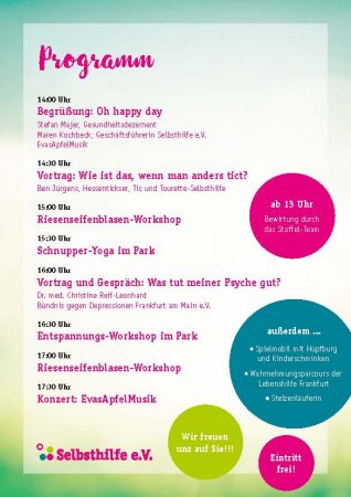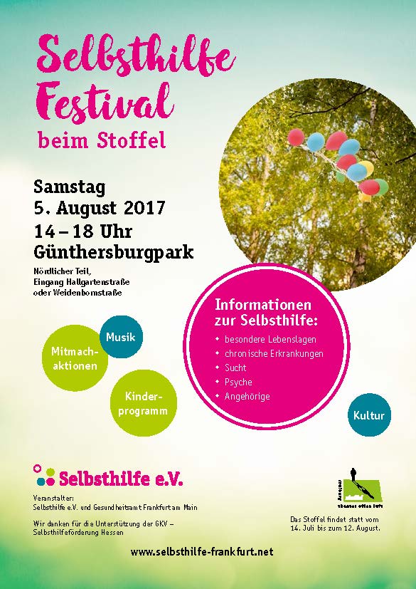 Am Samstag, 5. August wird FRANS mit einem Infostand auf dem Selbsthilfe-Festival beim Stoffel im Günthersburgpark vertreten sein. Kommen Sie vorbei!