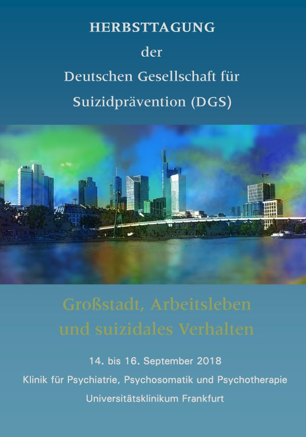Vom 14. bis 16. September findet die diesjährige Herbsttagung der DGS an der Universitätsklinik Frankfurt am Main statt. Passend zum Ausrichtungsort wird das übergreifende Thema „Großstadt, Arbeitsleben und suizidales Verhalten“ sein.